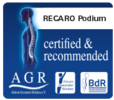 The suave combination of original Alcantara® fabrics and exclusive leather together with the passive ventilation of the open back shell and airy pad contours make even the longest of routes the most perfect of pleasures. In addition, the RECARO Podium is the first racing shell ever to be awarded the coveted seal of quality from AGR e.V, the German Campaign for Healthier Backs – a reliable decision-making aid when buying back-friendly products. The shell is also super light – but, of course, that goes without saying.